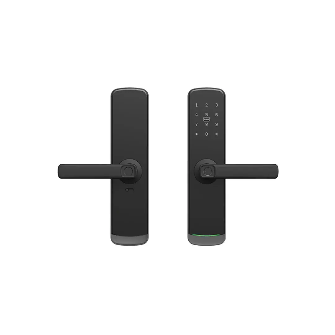 Široka pametna brava sa 5 različitih načina za otključavanje: otisak prsta, šifra, kartica, mehanički ključ i TTLOCK aplikacija. Pogodna za montažu na aluminjumska vrata, drvena vrata ili na metalna vrata.